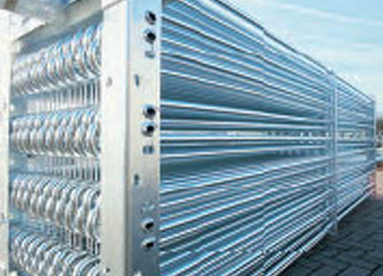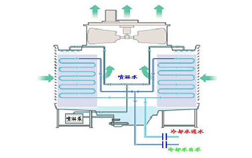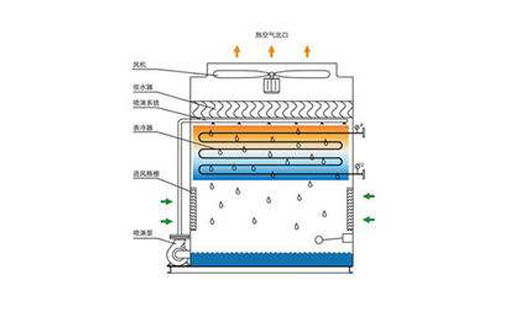 美系复合流冷却塔采用整体式盘管,闭式塔采用分段式盘管,每层盘管可独立拆卸。冷却塔在日常运行过程中,通过水热交换带走热量,外部喷淋水蒸发浓缩以后,可沉积性盐离子会在换热器上附着,也就是垢,时间长了之后会严重影响换热器的效率,需要对冷却塔进行正产的除垢清洗维保。空研换热器结构可以现场拆解完全清洗,美系复合流冷却塔因其换热器形式,整体式,不可拆卸,无法进行现场清洗,另外若换热器因腐蚀等其他原因有漏点,也无法在现场维修,只得拆解拉回原厂维修,成本较高,而且影响生产线的使用。空研冷却塔只要找到漏点并且把此层盘管拆解下来维修,不影响设备正常运行。